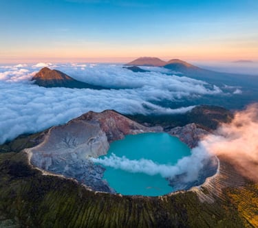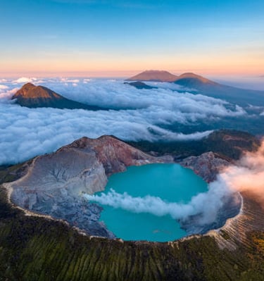 Discover the mesmerizing blue flames and beautiful crater lake at Ijen Volcano.